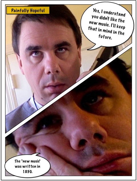 A few years ago I selected “Lift High The Cross” to sing at the Closing of worship. As people left quite a few told me they didn’t care for the “new hymn” (which was written in 1916). That experience is the inspiration for this strip.