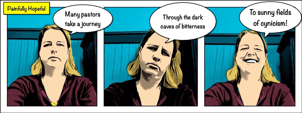 I love the metaphor of a “spiritual journey.” We move from one place – be it physical, spiritual, or a combination of the two – and wind up somewhere else entirely. This sense of journey is present in a good many pastors (and other Christians) who come into a church and quickly discover that they are going to have to move on from their original expectations, and though dark waters, in order to come to uncharted shores (which appearto be friendly). Many refuse to make the journey. Instead they establish themselves as caretakers – never daring to hope for more, but never really challenging anyone else either. More, sadly, get lost in the caves of bitterness. Unable to reconcile their original hopes and expectations with reality, they turn inward and become toxic to both the institution and themselves. Some, however, manage to navigate the course and land in a sunnier space, which I’ve labeled “cynicism.”