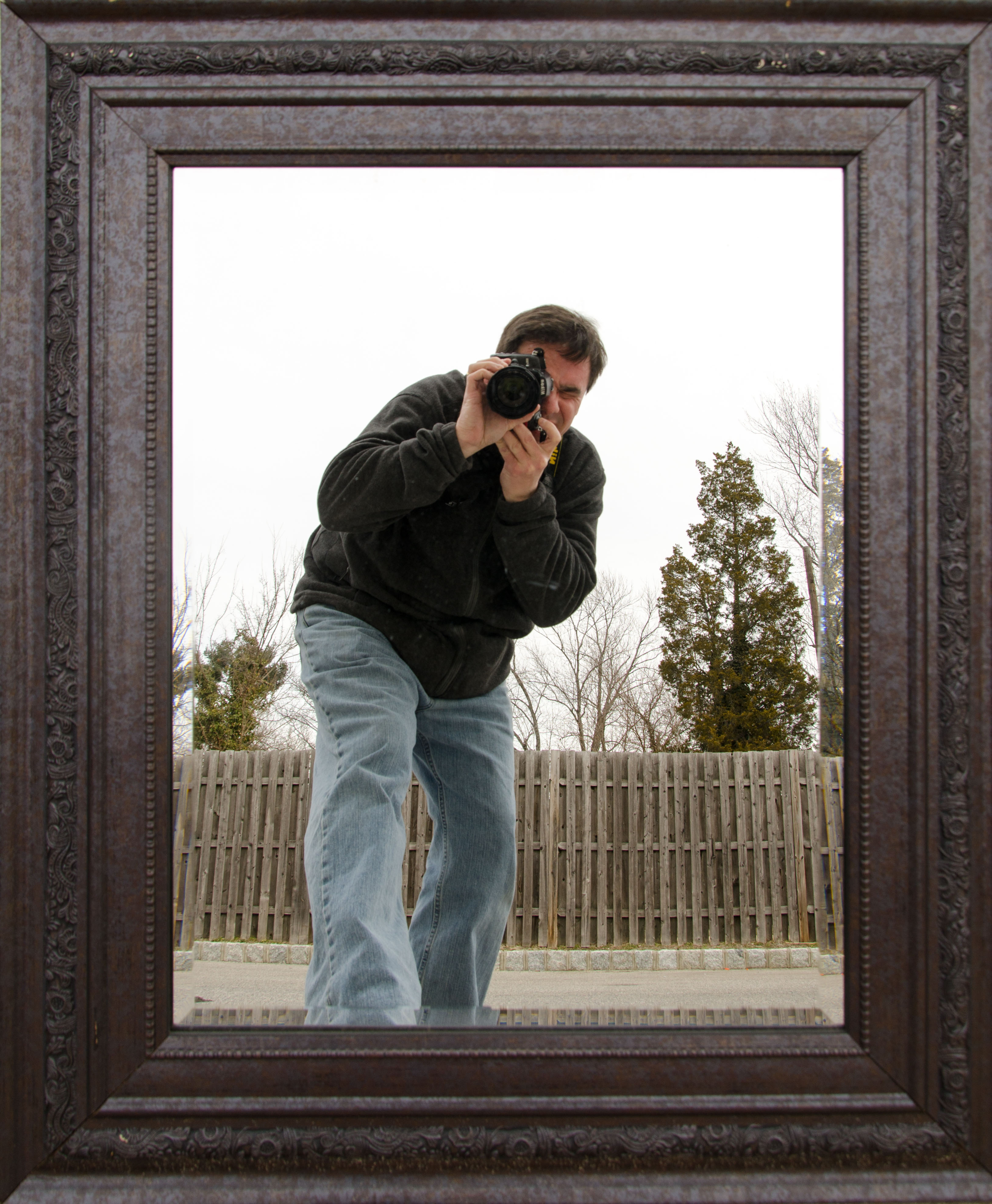 Third, I just love the idea of taking a picture of me taking a picture. It’s fun to look at myself and imagine myself on the other side of the lens framing the shot. I experience a “mirrors within mirrors” moment when I examine this image, and it’s a lot of fun.