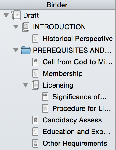 Scrivener, however, is far from easy. My transition into it’s workflow was easier than most folks I know because I’ve broken up my documents utilizing styles for years. The idea that a second level heading is really the second level of an outline is second nature to me, and this translated well into the model of different document levels in the binder. For folks who might expect Scrivener to simply act like a word processor, however, the transition can be quite difficult. Unlike word processors, which will get out of a user’s way when they want to use the application as though it were a typewriter 1, Scrivener refuses to bow to this impulse. In fact, the more you want to use Scrivener like a typewriter, the less you will appreciate it. For Scrivener to really work, every distinct idea – whether it be a chapter, section, or sub-section – should be it’s own document. This way the larger project has a built-in structure.