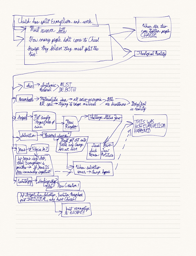 Essentially, my college notes are drawings of boxes, filled with ideas and connected with arrows which denoted the flow of the lecture. Nowadays we’d call it “mind-mapping,” but the form I ended up using was much more free-form than the types of mind maps you get from most software packages nowadays. That’s not a knock on mind-mapping software, which I love, it’s simply pointing out a limitation of a computerized mind-map. Computers are all about logic 2, and logic depends on having a well-defined structure. This is something at which most mind-map apps really excel – they brilliantly and quickly create a hierarchy of structure in order to map an idea. I use such maps often, particularly iThoughts on iOS and OS X.