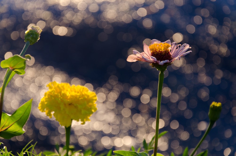 The Sun was about to set, but the light hadn’t yet turned orange. The combination of a good wind and the low angle of the light, however, created amazing sparkles off the water. And these were made all the more lovely by having my depth of field take them out of focus.