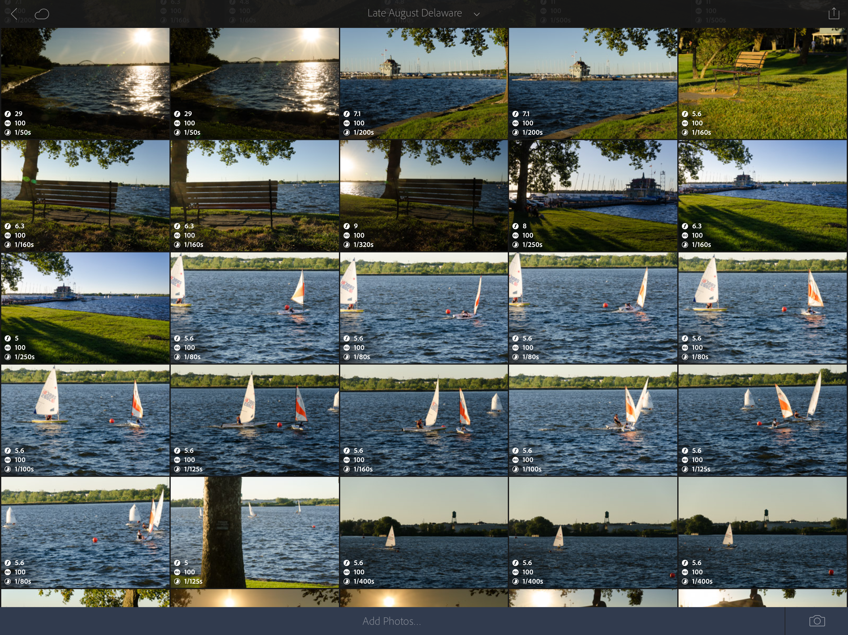 One of the features I love about Lightroom’s desktop application is the ability to sync settings between multiple photos. While adjustment settings can be copied and pasted between photos one at a time in mobile app, there is currently no way to select a sub-set of photos and apply copied settings to all the highlighted images. Doing this process piecemeal is far from intolerable, but the ability to do apply adjustments in batches would be a significant time-saver.