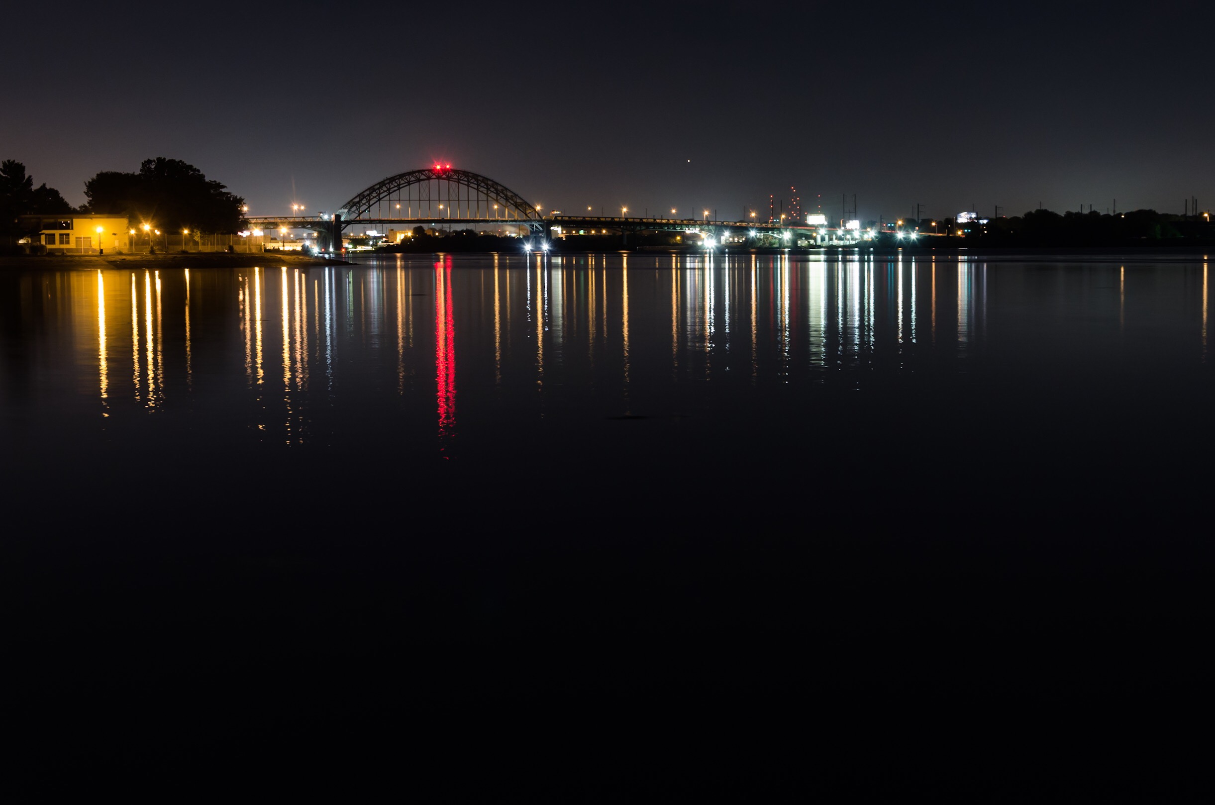 I’m very fortunate to live near such iconic scenery like the Delaware River and the Tacony-Palmyra Bridge. There’s always something new to photograph on the river, and the open space gives me ample opportunities to photograph sunrises and sunsets 1. I’d never, however, been down to the river to capture the bridge at night. Yesterday I rectified this situation and walked down to the banks of the Delaware with my tripod, wireless tether, and camera. I took my 18-105mm lens, as it gave me the best range of focal lengths for the photos I was envisioning. My favorite image from the night is embedded below.