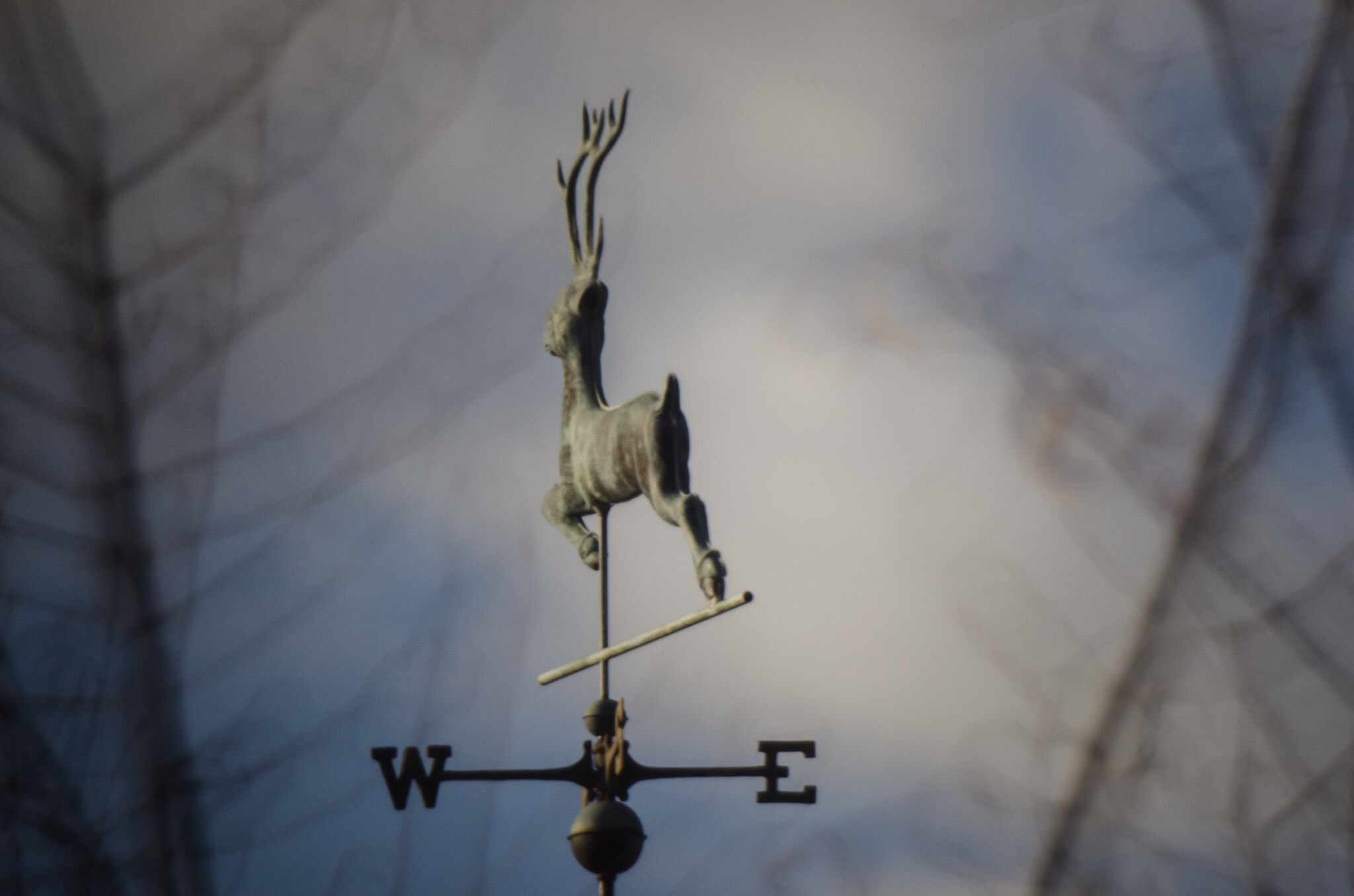This gave me a great opportunity to practice using my 500mm reflector lens to capture the weathervane across the street. Sadly, before was able to get my remote capture system set up a cloud bank rolled in and the wind moved the indicator to a more severe angle. Still, I was pleased with the results. I’m still growing accustomed to the focus ring on the lens, but I managed to get the image below relatively sharp.