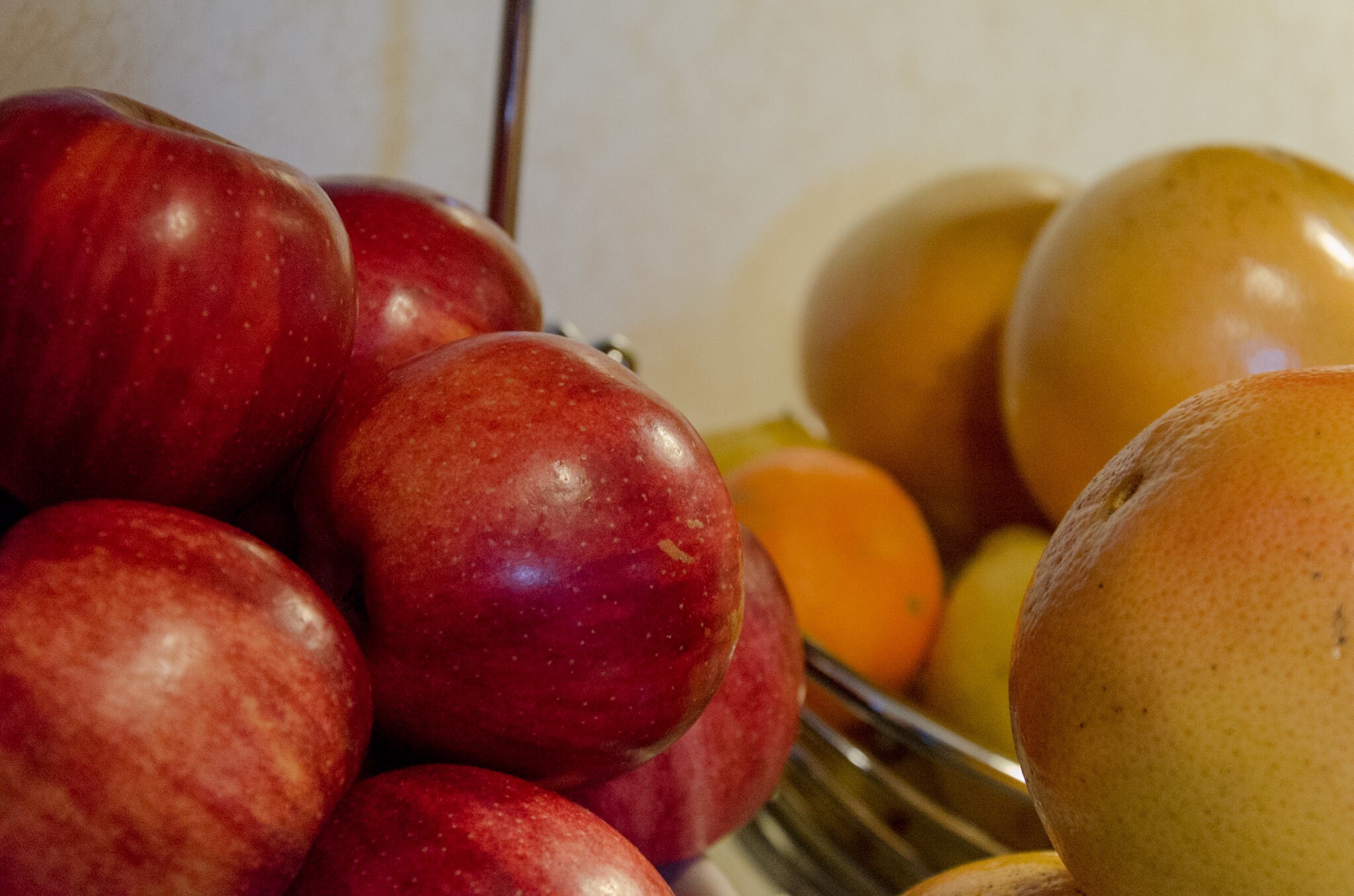 As I stumbled around the kitchen this morning, I saw an interesting glint of light in my peripheral vision. The previous night my wife had brought home a load of fruit 1, and as the morning sunlight reached its auspices the colors really popped. So, after I ground my coffee 2 I went and grabbed my camera. Below is my favorite photo from the set 3.
