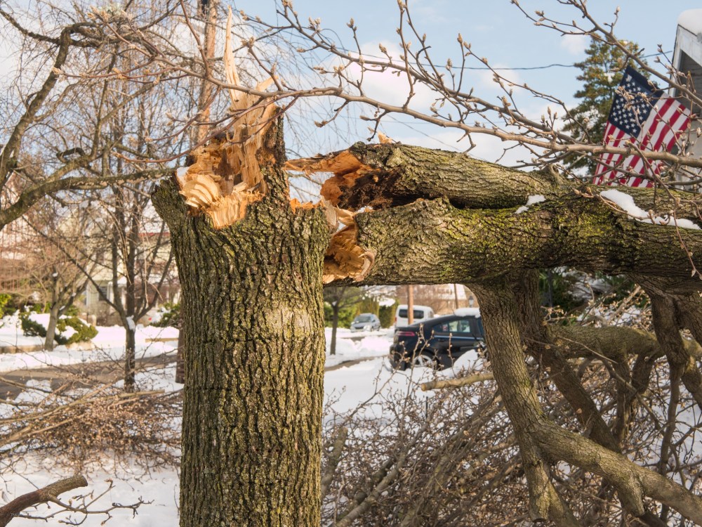 - I almost went back inside when I turned the corner with the church’s snow blower. The sight of a fallen tree, while standing under a lot of other snow-weighted trees, gave me a bit of pause. ↩