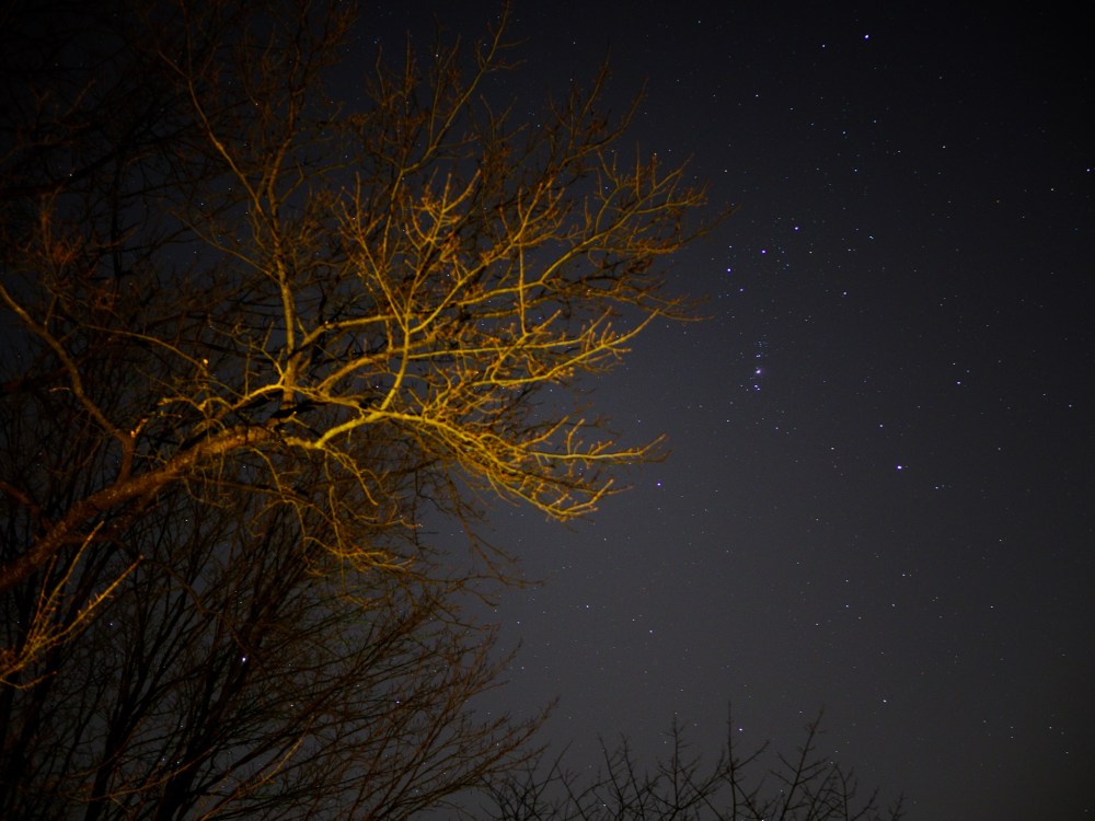 Watching the tutorial re-sparked my interest in capturing photos of the night sky, so tonight I grabbed my camera and headed out to see what I could capture if I followed the guidelines. I just headed out to my side yard, so there was a great deal of light pollution around me, but it was amazing how much detail I could bring out as I developed my photos in Lightroom. I did have to shoot at a much lower ISO, however. The tutorial recommends shooting at around 5000, my best shots were taken at around 500. Anything over that just ended up getting washed out due to all the ambient light. I’m looking forward to getting out into a darker field, eventually with a wider lens so I can lengthen my exposure time. My ultimate goal is to get an image of the Milky Way!